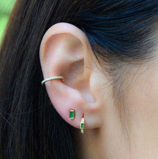 Emerald Green Baguette Stud Earrings